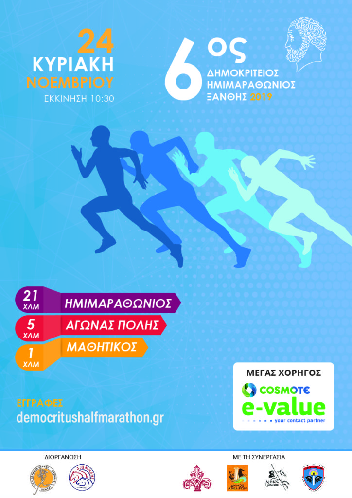 Το Σάββατο 19 Οκτωβρίου 2019 στην Κεντρική Πλατεία Ξάνθης από τις 11:00 έως τις 13:00, θα βρίσκονται μέλη του Α.Π.Σ. Δρομέων Ξάνθης « Xanthi Runners » με σκοπό την ενημέρωση του κοινού για τη διοργάνωση των αγώνων του 6ου Δημοκρίτειου Ημιμαραθωνίου Δρόμου.